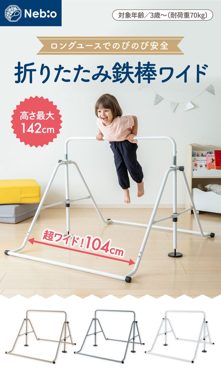 鉄棒 室内用 子供 キッズ  折りたたみ 耐荷重70kg 室内遊具 スポーツトイ 運動 さかあがり練習ができる!折りたたみ鉄棒ワイド nebio ネビオ