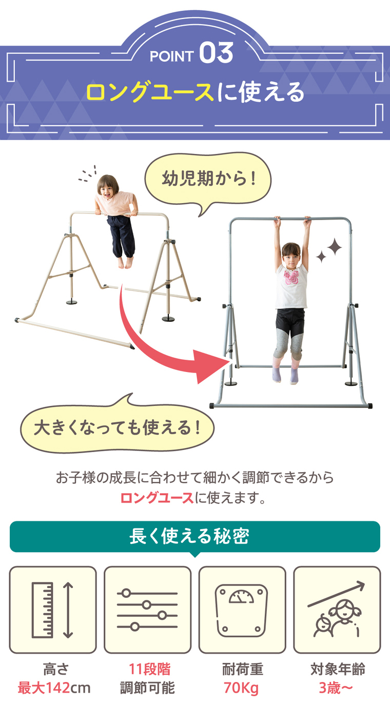 ■品名 折りたたみ鉄棒ワイドbr> ■対象年齢 3歳頃から