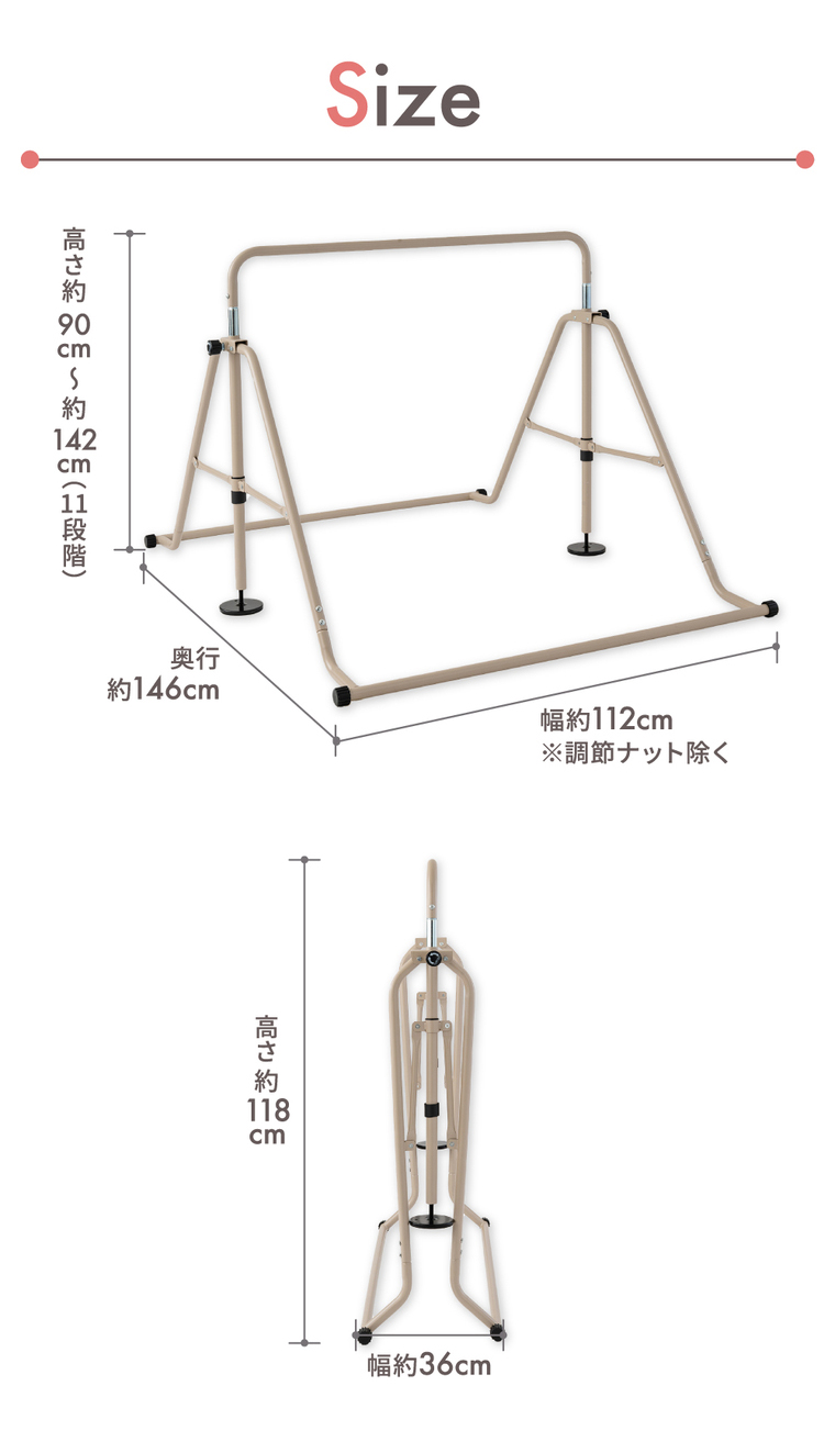 本体サイズ 幅112cm×奥行き146cm×高さ90cm〜142cm
