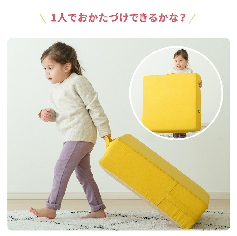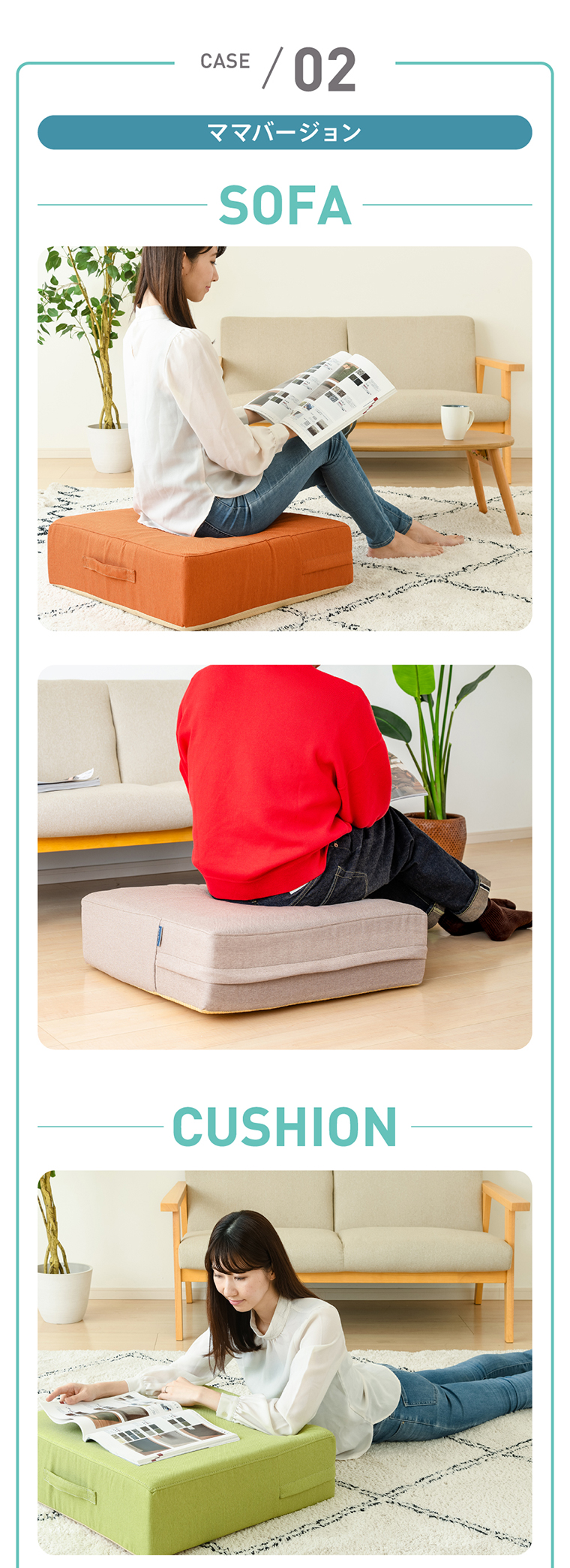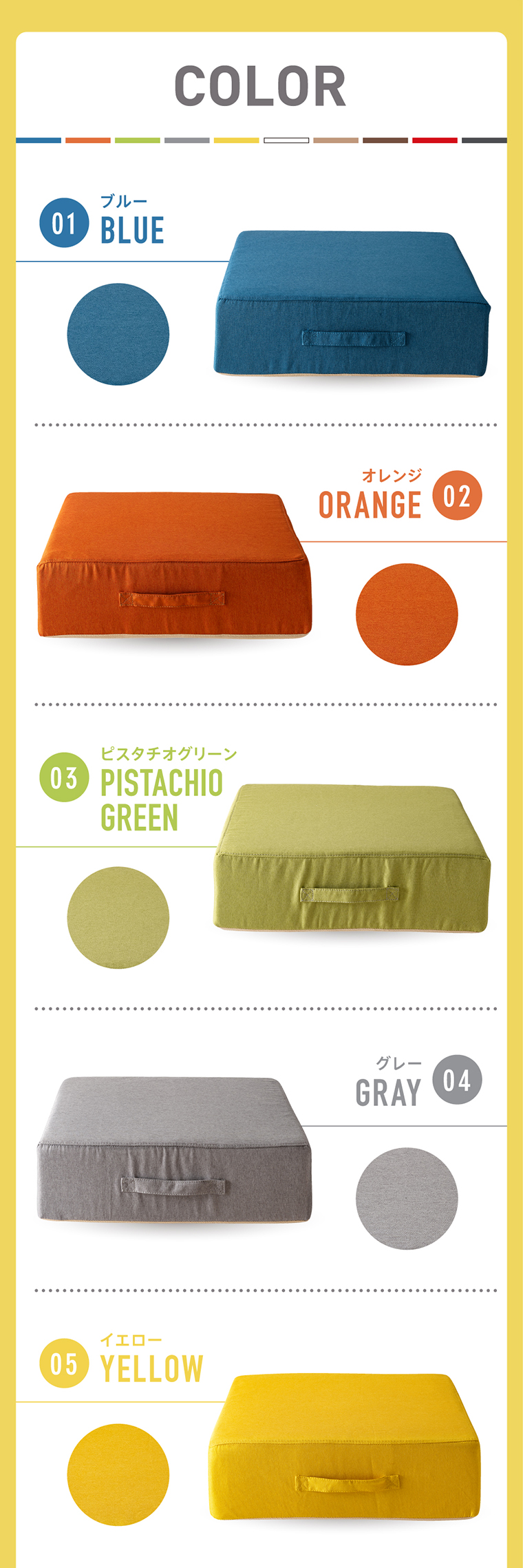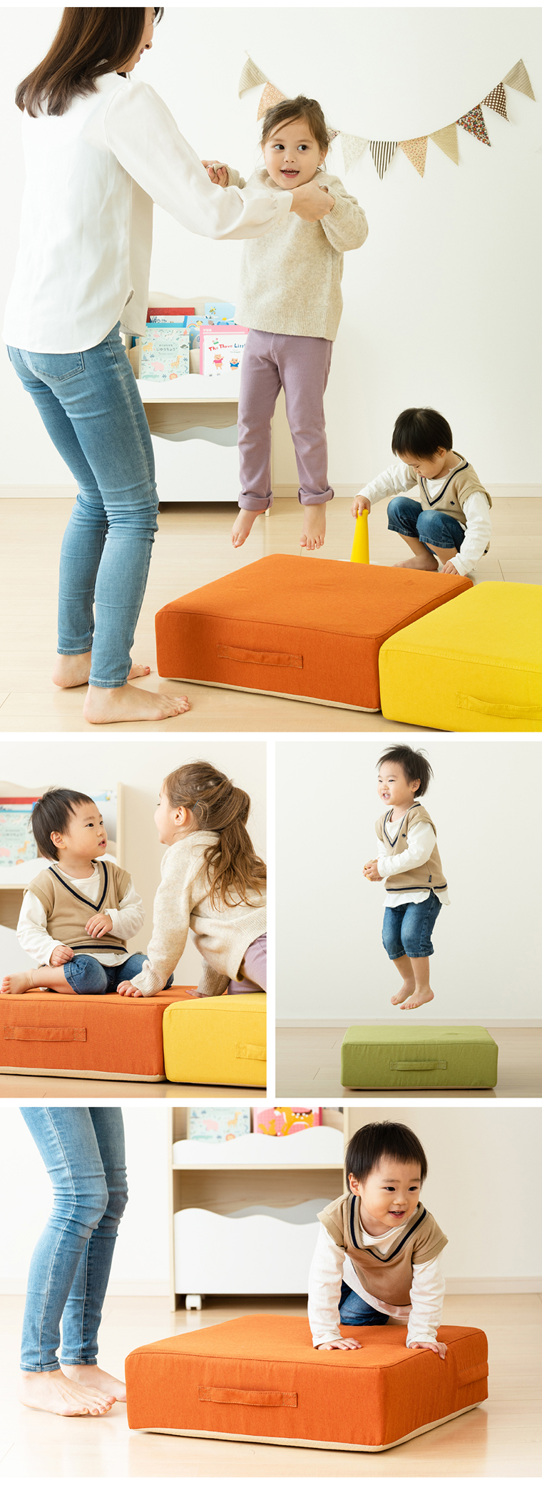 ・ポケットコイルスプリングを64個内蔵&高反発ウレタンフォームを使用しているから、しっかり飛べる!だから楽しい! ・58cmと大判の正方形&すべり止めで安定感バツグン! ・オットマンやインテリアとしてもおしゃれに使用できます。 ・カバーは手洗いOKだからいつでも清潔! ・重量3.1kgの軽量+取っ手付きで移動も楽々。